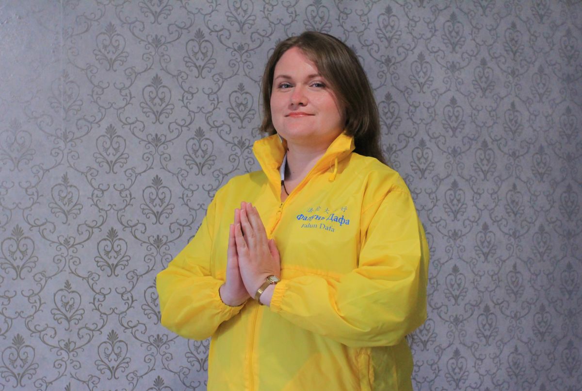 图5:来自克拉斯诺亚尔斯克的法轮功学员迪娜合十谢师恩