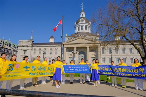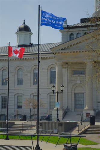 同一天五月四日升旗的,还有历史名城金斯顿市(Kingston),今年已是连续十四年褒奖法轮大法对社区的贡献。