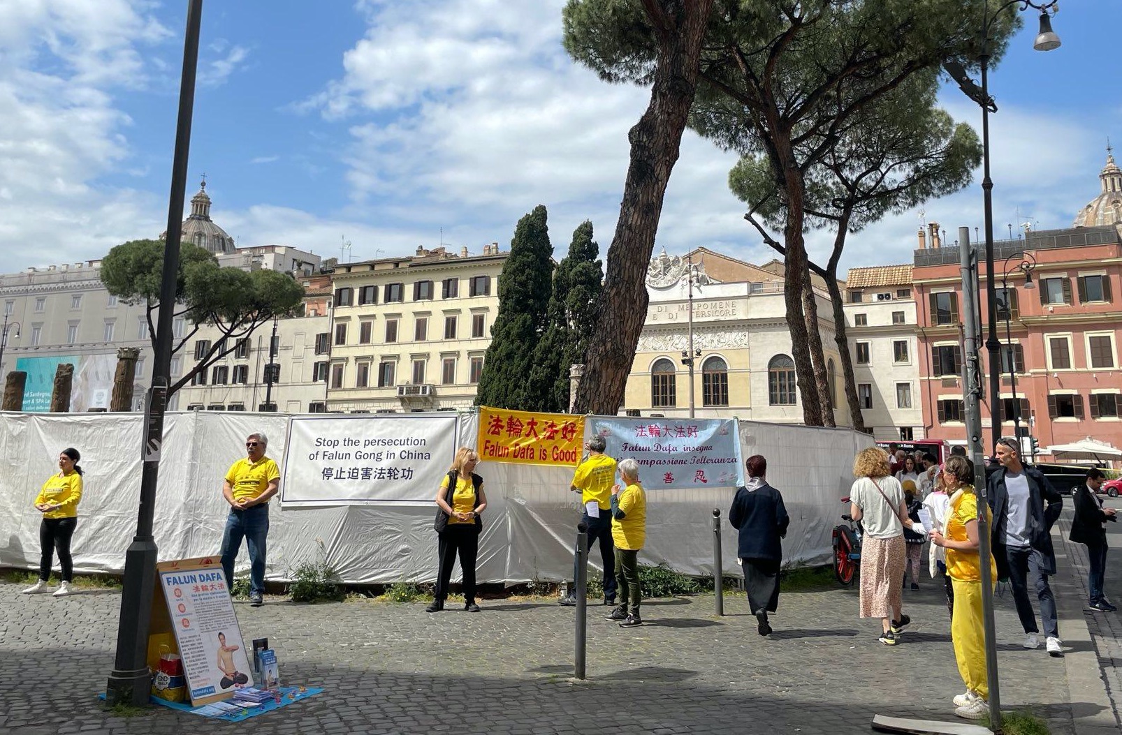 ![]() 图1:在“五一三”世界法轮大法日来临之际,二零二零年五月八日,法轮功学员来到罗马市中心,传播大法的真相。 |