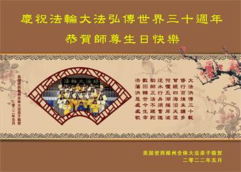 美国芝加哥、爱荷华州、密苏里州、威斯康星州、圣路易斯、匹兹堡、特拉华、宾州、弗吉尼亚州大法弟子恭祝师尊华诞暨世界法轮大法日!