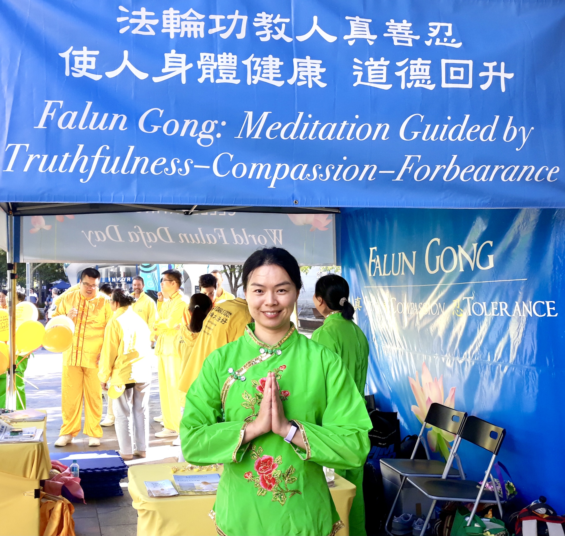 她说:“二零一零年,我认识很多年的朋友跟我打电话说,你一定要学这个功法,这个功法叫做法轮功。他说:‘法轮功非常棒,是我所经历的最好的。’我想,听上去不错。然后,他跟我说,中共已经禁止了这个功法。他这样一说,我就知道了,这是一个好的功法。他问我,要不要我给你一个在你们那个地区炼功点的联系电话,因为他住在南部的乡村。我说,不用了,我自己会去找。因为我知道,我会去炼的,我不需要别人的帮助。”