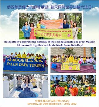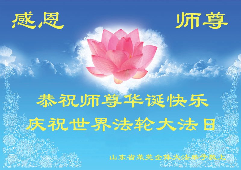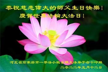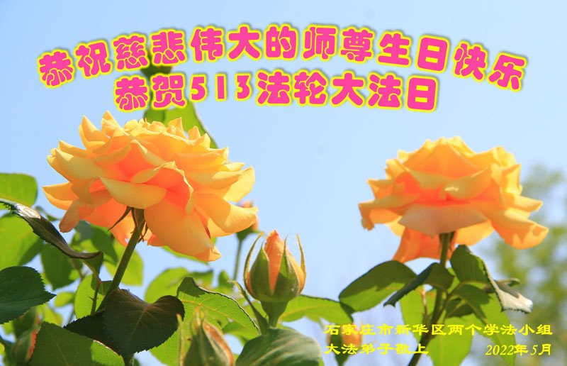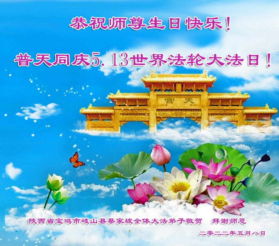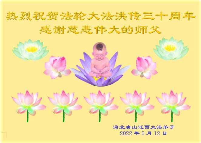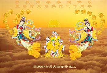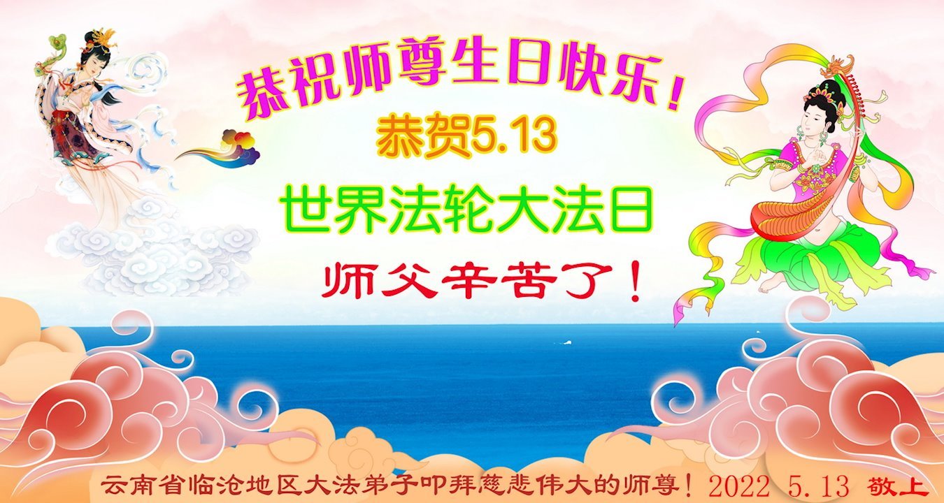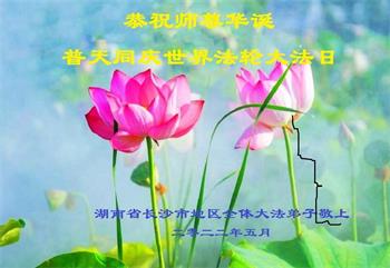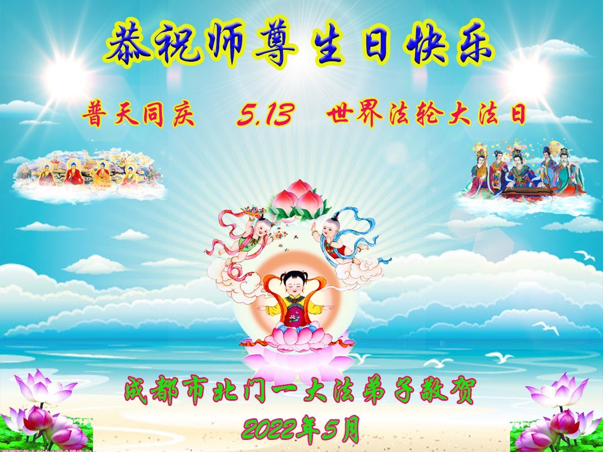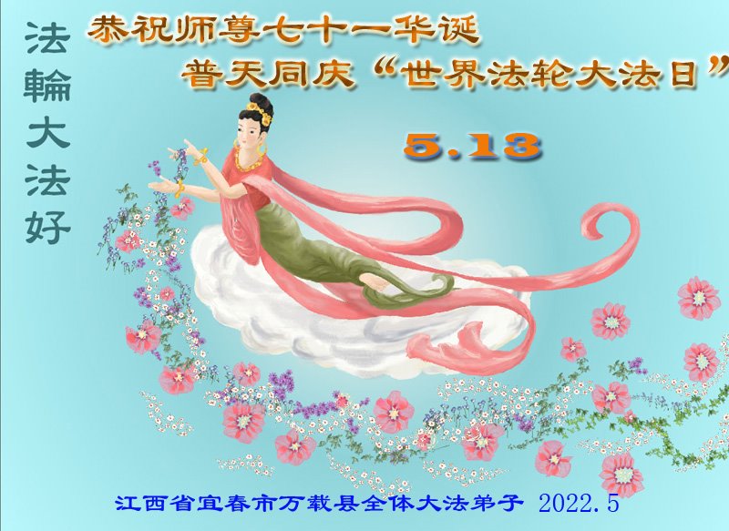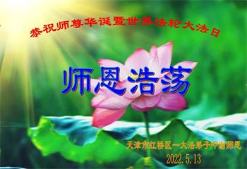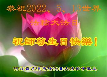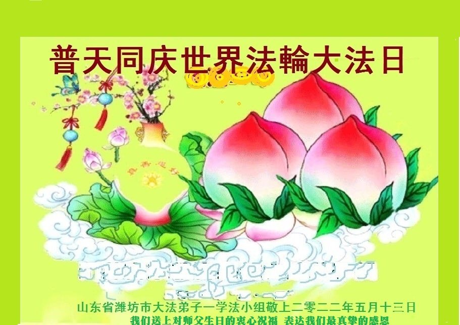 伟大的正法走到今天,迎来了大法洪传三十周年。佛恩浩荡,乾坤再造,穹宇感念!在这伟大的历程中,师尊救度并造就了我们,也救度了无量穹体、无尽众生于坏灭,赐予了我们与众生未来的一切。弟子们与众生对师父、对大法无比感恩之心难以言表。值此二零二二年世界法轮大法圣日来临之际,法国大法弟子向慈悲伟大的师尊表达问候与感恩!恭贺大法洪传三十周年!恭祝师父生日快乐!