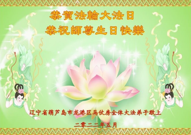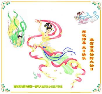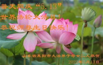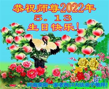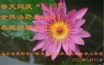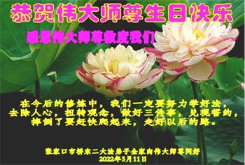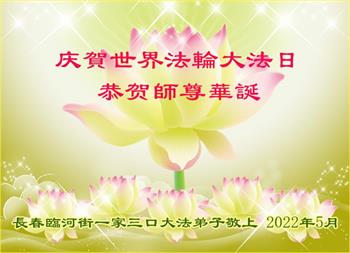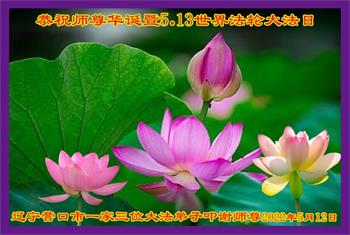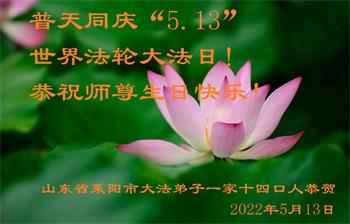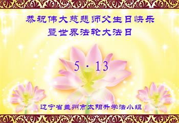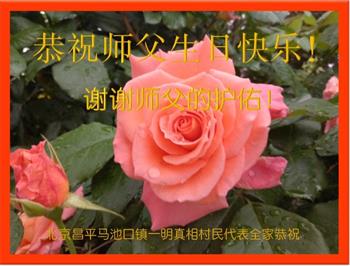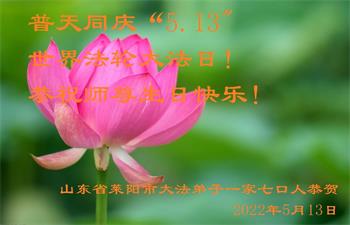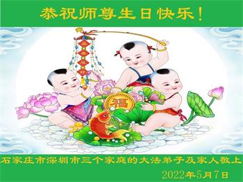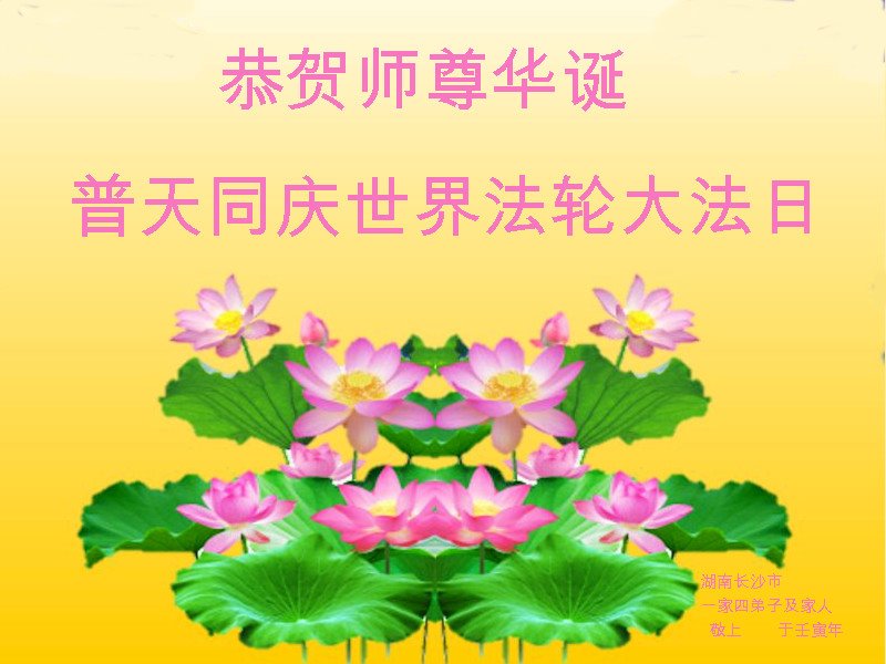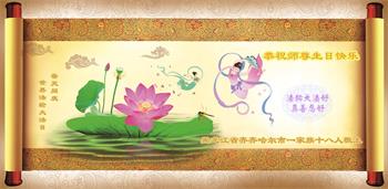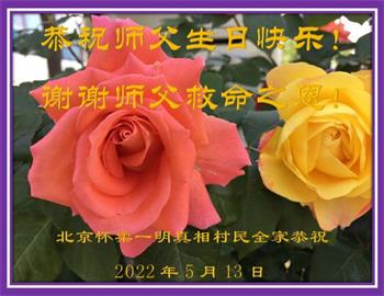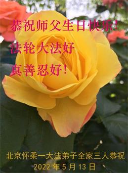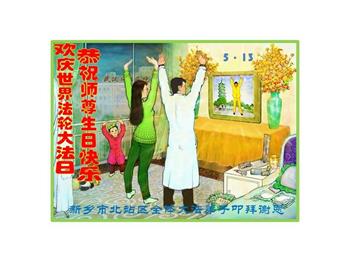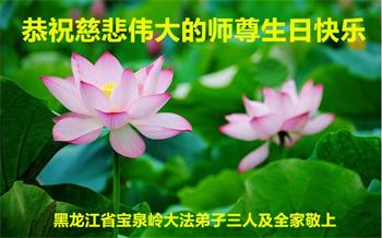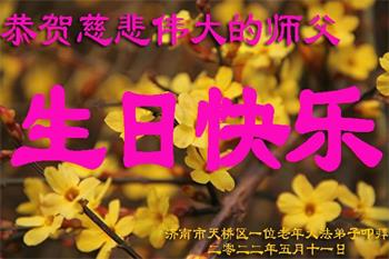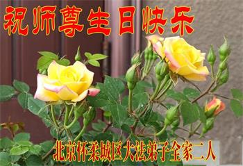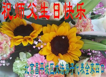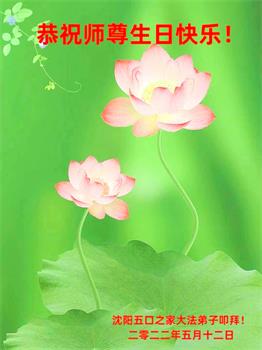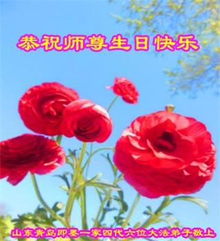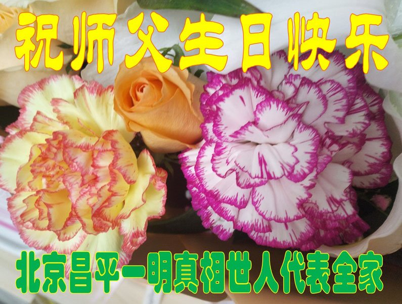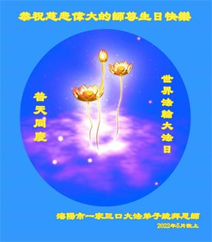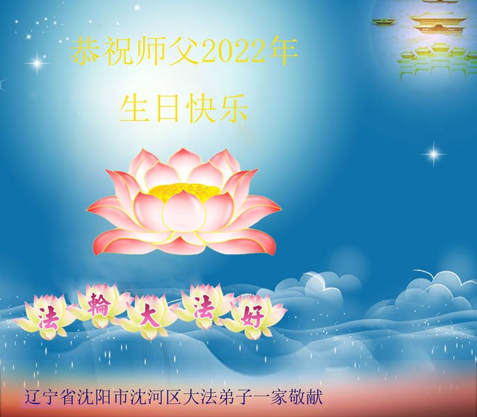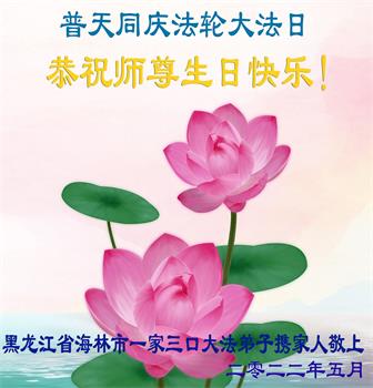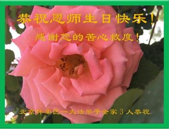 我天天供奉李大师,诚心念“法轮大法好”、“真善忍好”九字真言。每天端起饭碗来,我就会说:请李大师先吃!大法师父太慈悲了,我也不修炼,只爱看大法弟子发的真相资料,也只不过为蒙冤的法轮大法说句公道话,大师就把我和老伴的病治好了,是花多少钱都买不来的。李大师您辛苦了!我们全家人感谢李大师的救命之恩!恭祝李大师生日快乐!