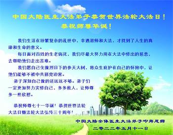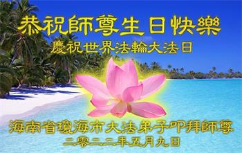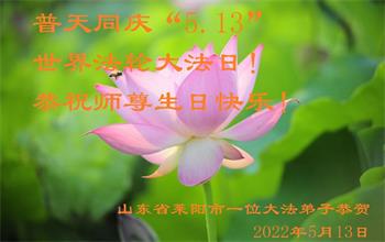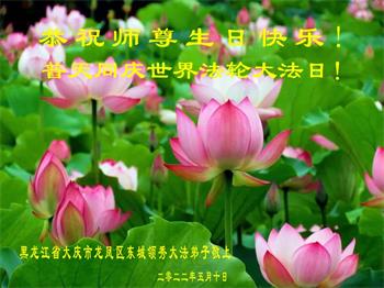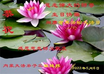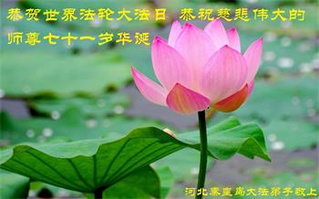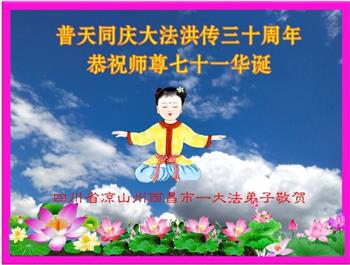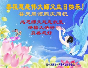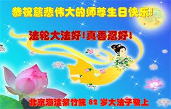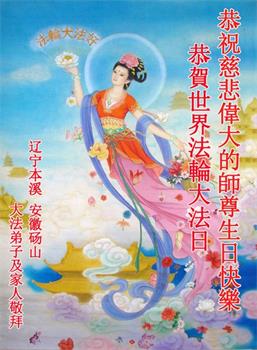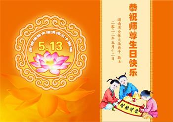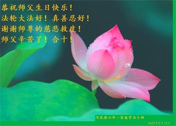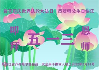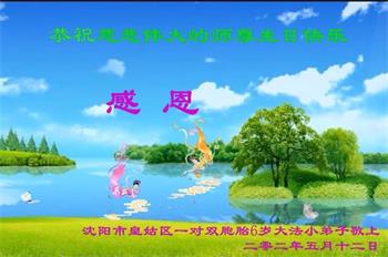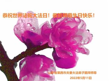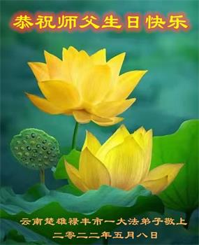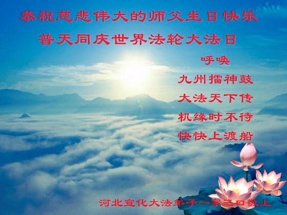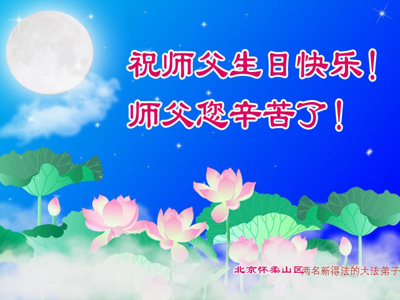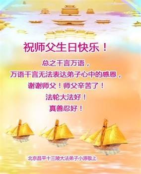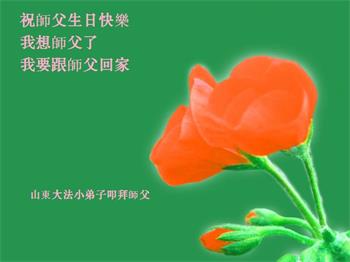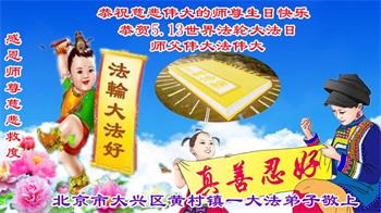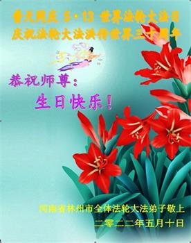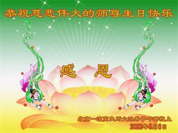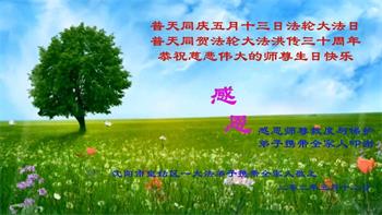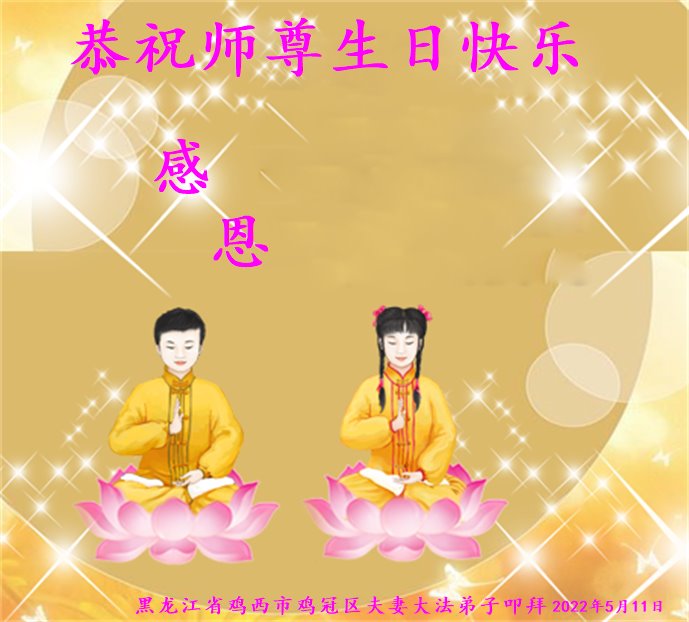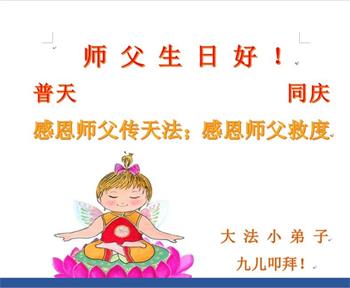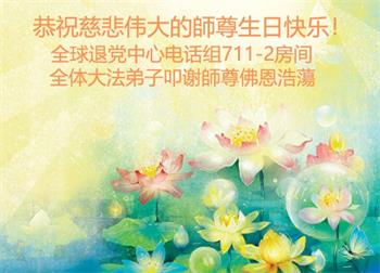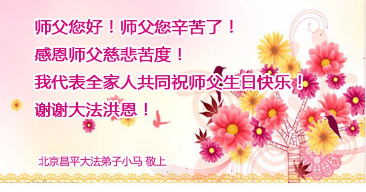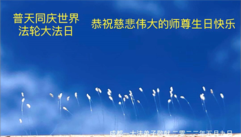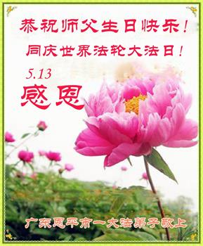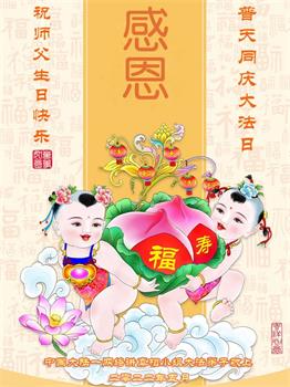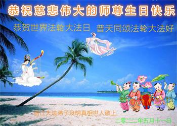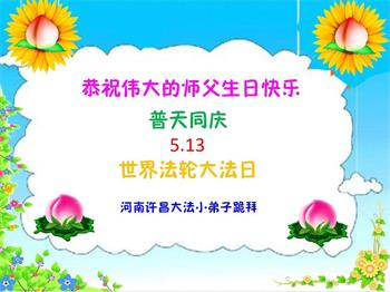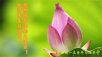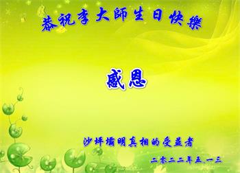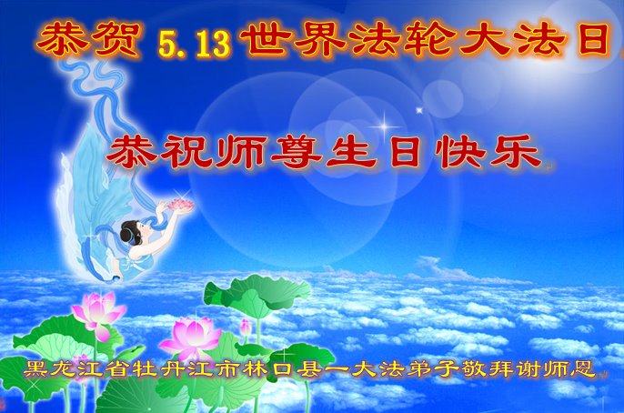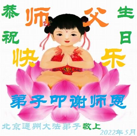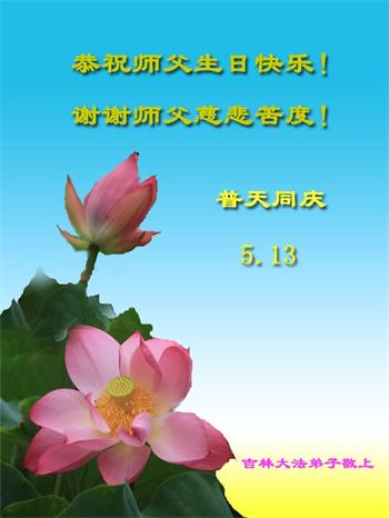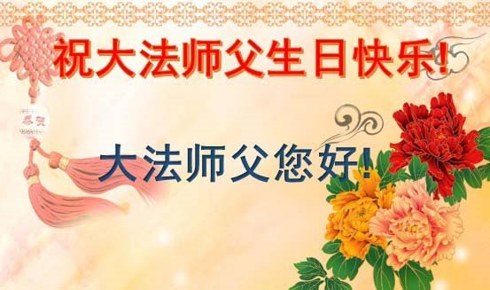 在这里借明慧网恭祝大法师父生日快乐!感恩大法师父救命之恩!是大法师父把我这个危重病人从死亡线上救了回来,给了我第二次生命。我虔诚的敬念:法轮大法好!真、善、忍好九字真言获得新生,我对大法师父感恩不尽。再一次谢谢大法师父救命之恩!双手合十谢大法师父!