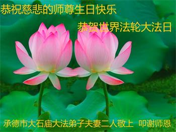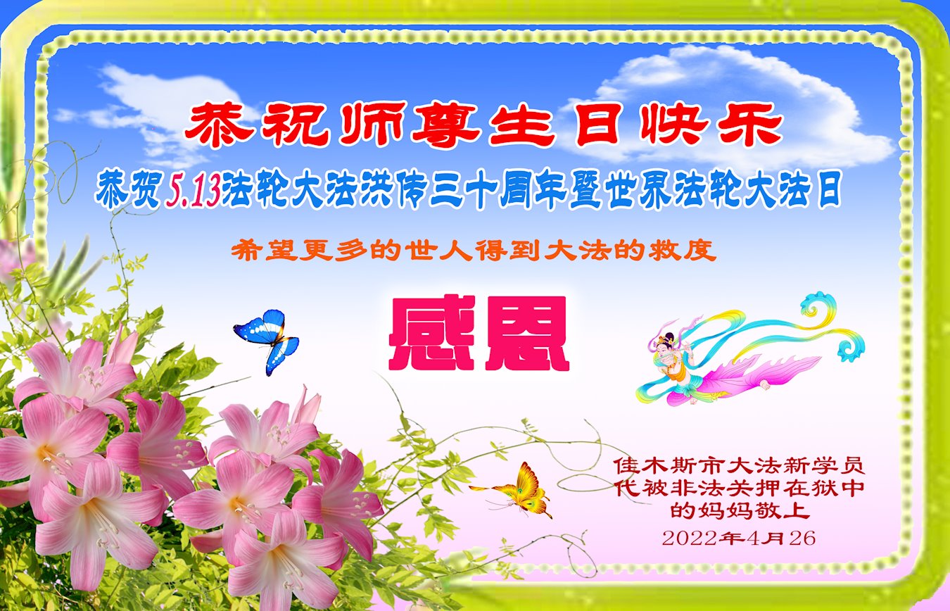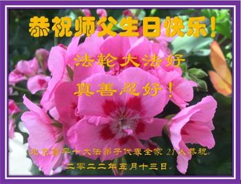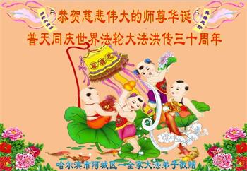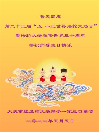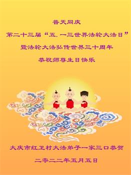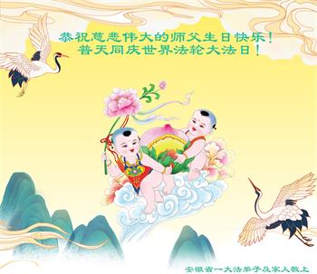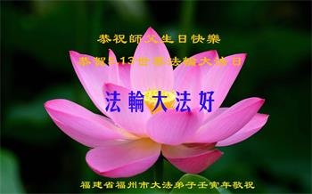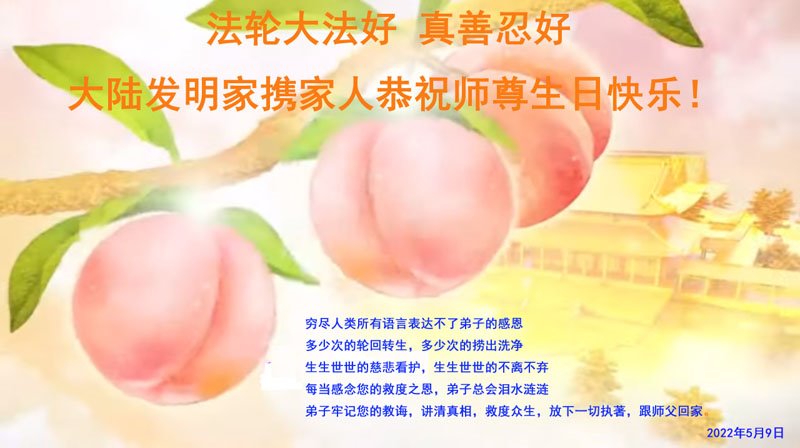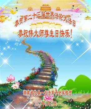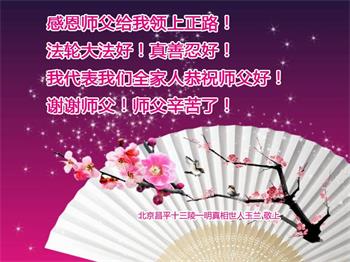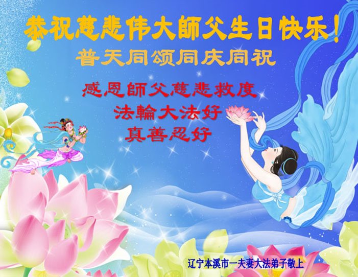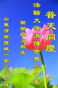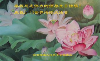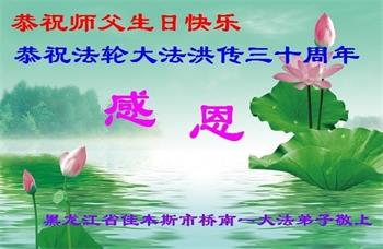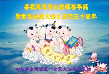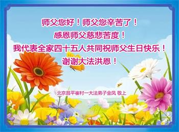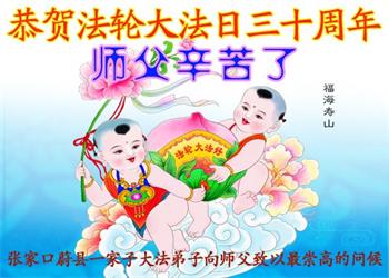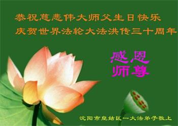 我是一个大法弟子的家人,妻子修大法,我也是个受益人,多次得到大法师父的救度,恭祝大法洪传三十周年!恭祝师父生日快乐!谢谢师父!谢谢大法!