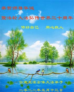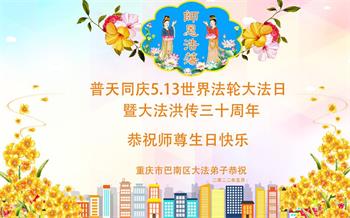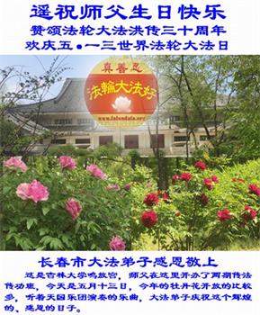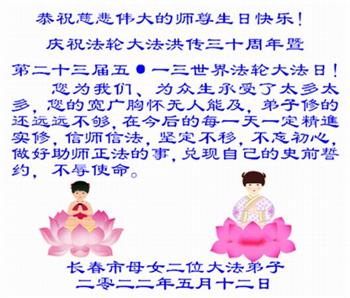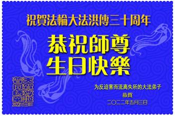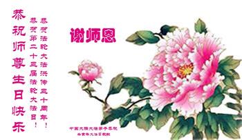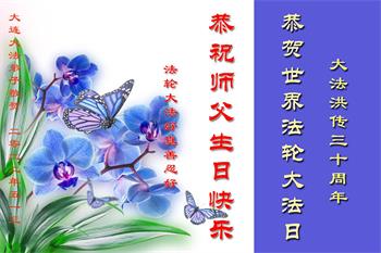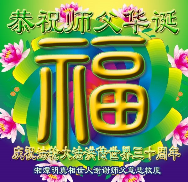 恭祝法轮大法洪传三十周年!恭祝慈悲伟大师尊生日快乐!
