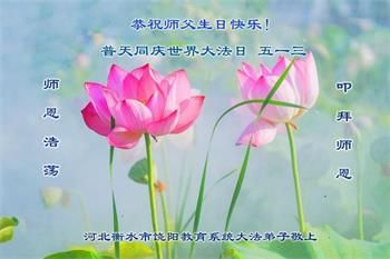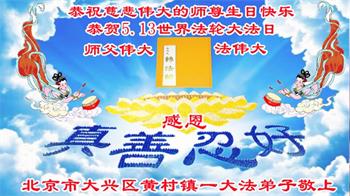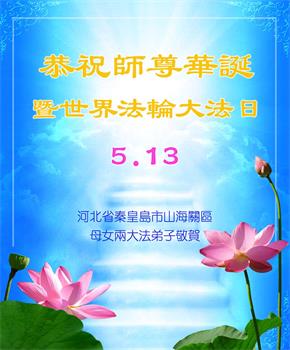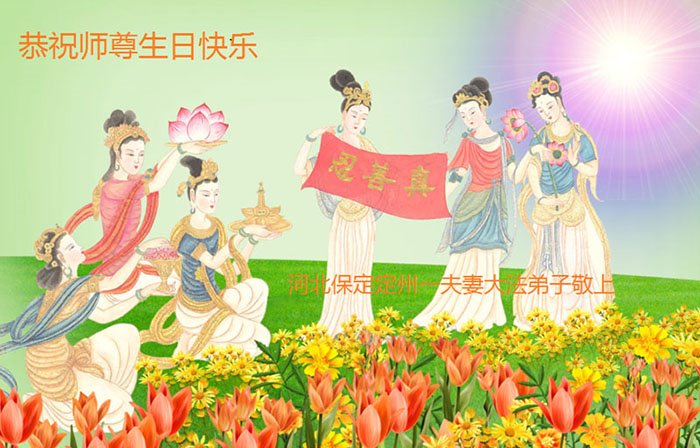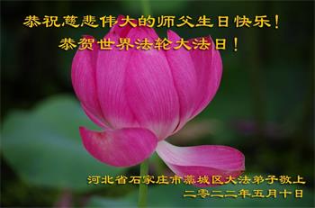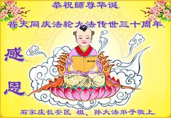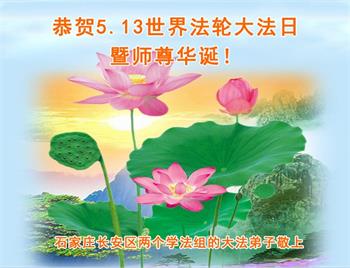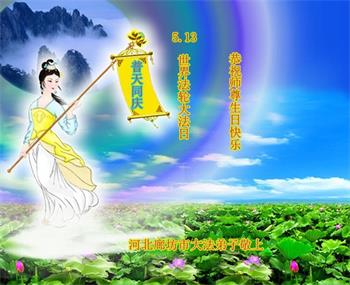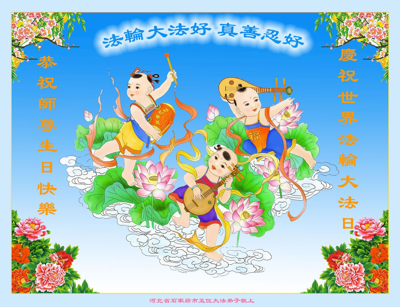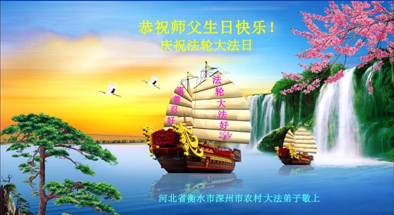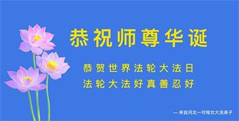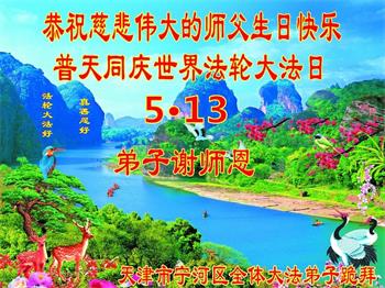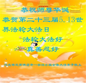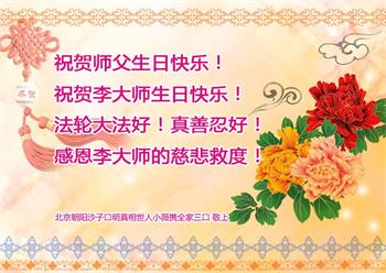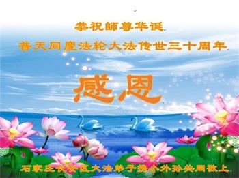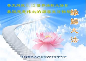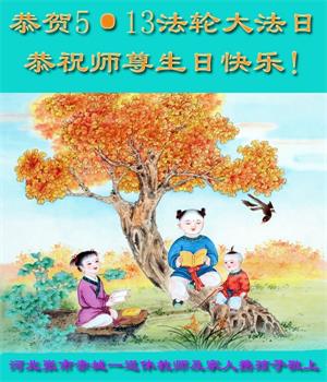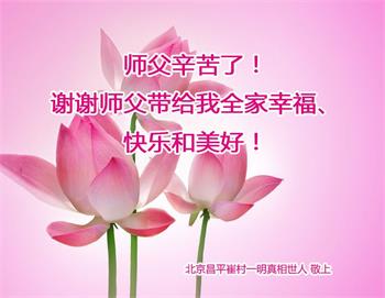 河北省平山县百姓在寄给大法师父的贺信中写道:我们见证了您的弟子们让家人和亲人们之间关系溶洽、和谐,关键就在于他们所信奉的“真善忍”有着巨大的善化人心的作用。“真善忍”不仅改变了他们,让我们身边的人看到了大法的美好,同时也改变了我们。