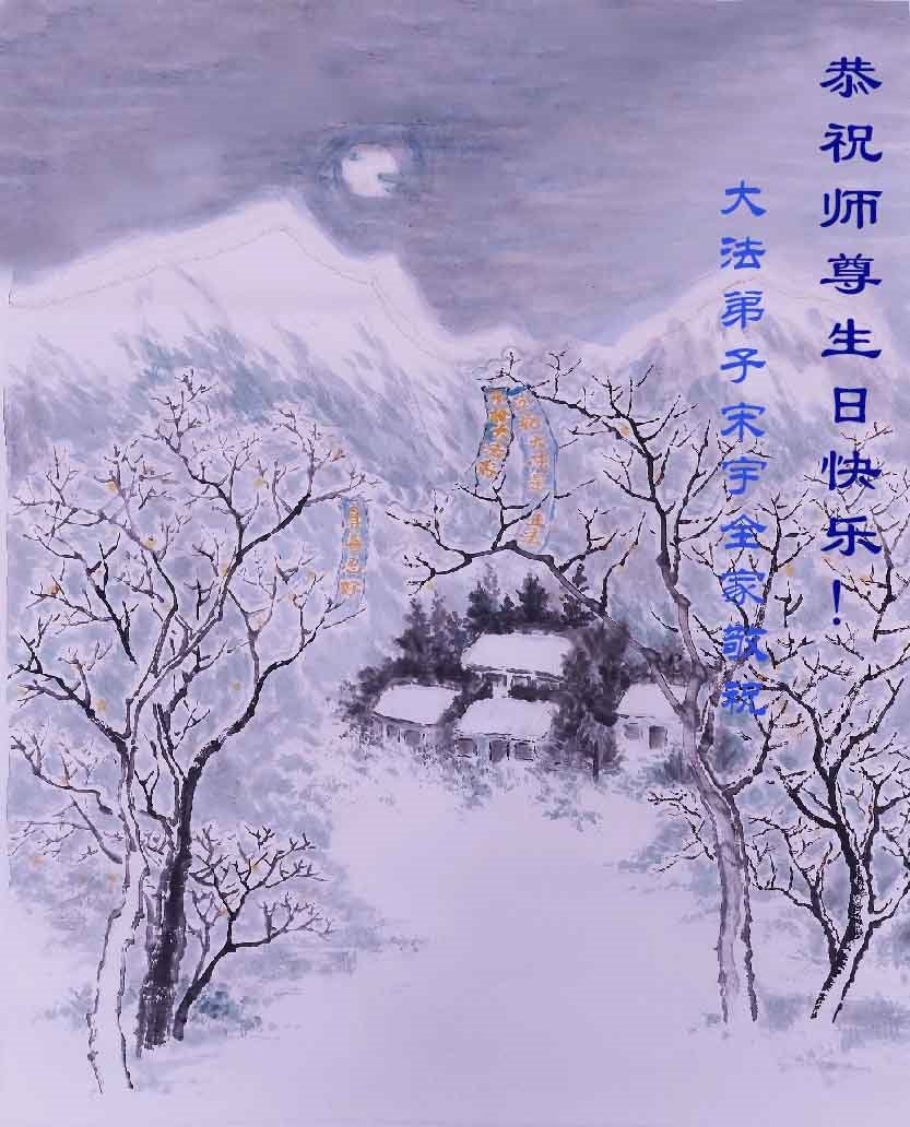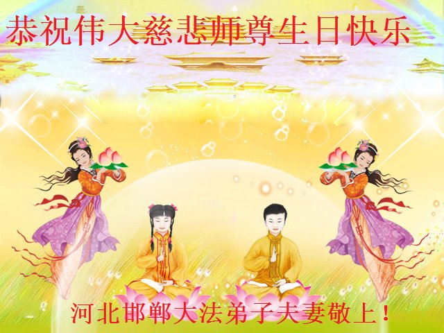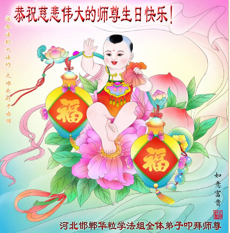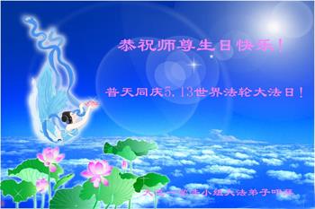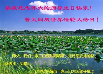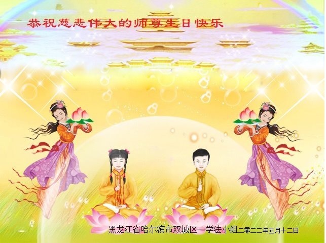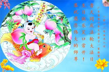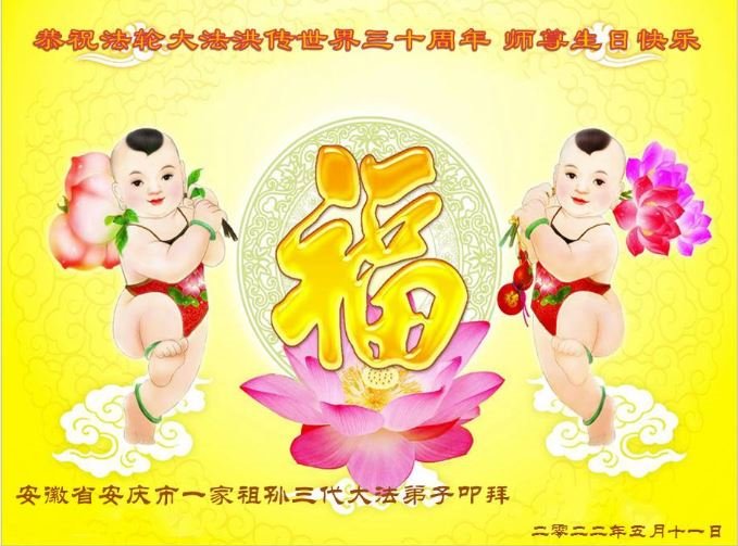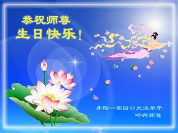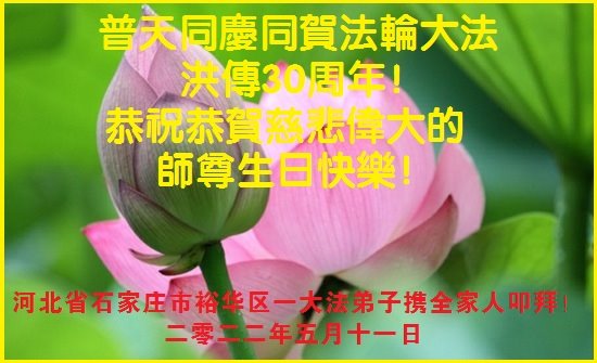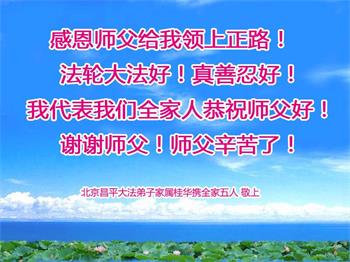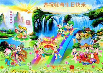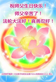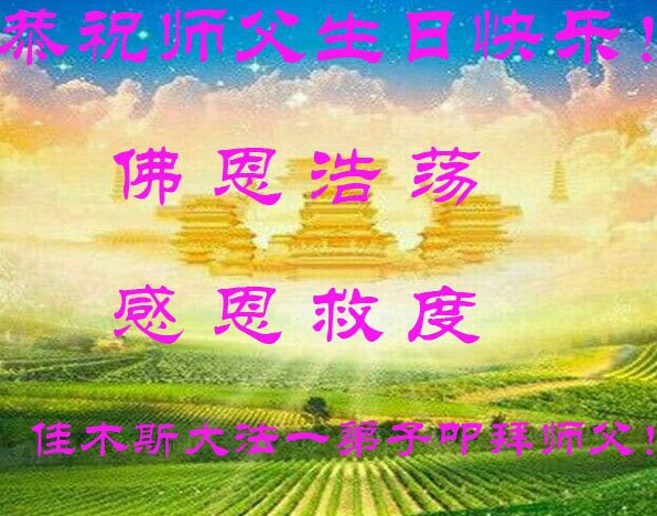 全家叩拜!谢谢伟大的大法师父,祝您生日快乐!