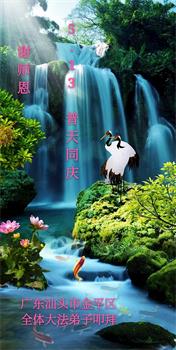大法师父感谢您教出了一大群善良的大法弟子,我们才能明真相得福报。谢谢您了!