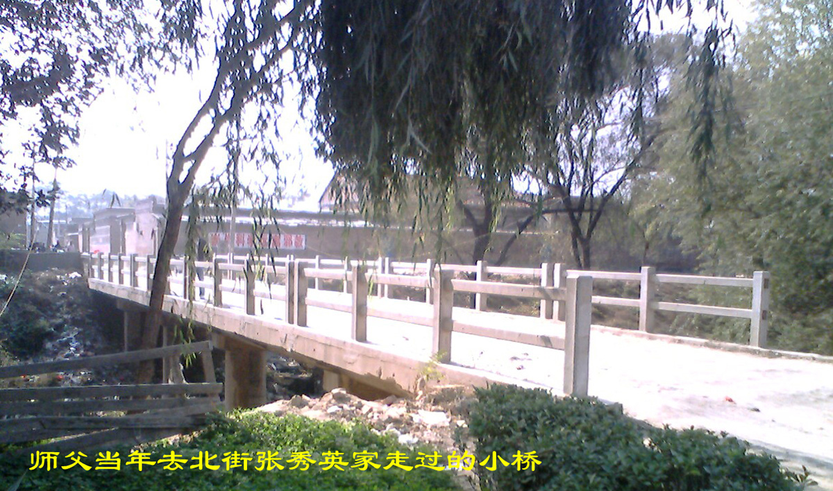 图2:一九九二年十一月十八日上午,我为了报答师父的救命之恩,盛情邀请师父一行到我租住的县城北街村家中做客。这是师父当年走过的小桥(此桥因城区改造今已不存)。