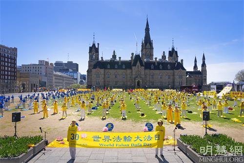 【明慧网二零二二年五月十五日】(明慧多伦多记者站报道)二零二二年五月十日,来自加拿大东部部分法轮功学员汇聚在首都渥太华国会山前,以集体炼功、歌舞、游行的形式庆祝法轮大法洪传三十周年。九位联邦议员到场与法轮功学员同庆法轮大法日。