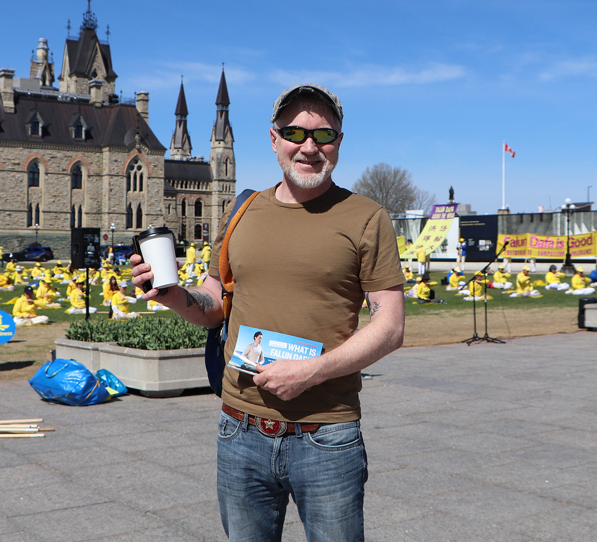 乔(Joe)是在渥太华工作的一名计程车司机,在他看到国会山广场前众多的大法弟子时,他对送上大法资料的学员说:“我曾经看到过法轮功学员们炼功,我感到这是很平和的一种修炼方式。”