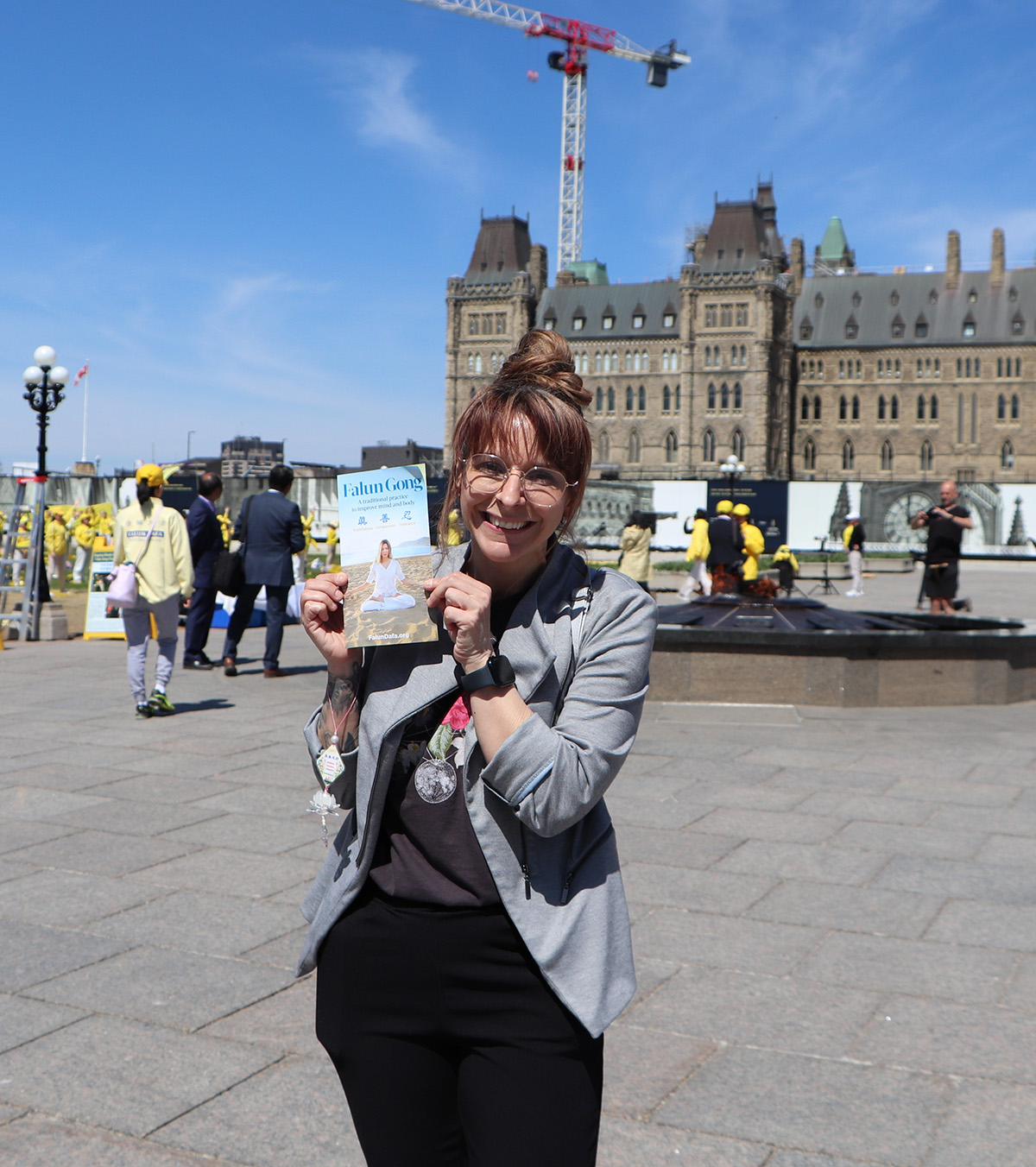 约瑟(Josee)是来自一个小镇的农场主,她非常感谢法轮功学员给她介绍了法轮功,她兴奋的说:“我明白了她告诉我的什么后,我非常的高兴,因为我想这可能就是我要尝试做的事情。因为自从病毒在全球蔓延后,很多人都很恐慌,好像都在寻找一种能解脱疫情困扰的东西,我觉得我今天找到了。所以非常的感谢。我知道可以在网上学,还可以在上网免费学。真是太好了。”