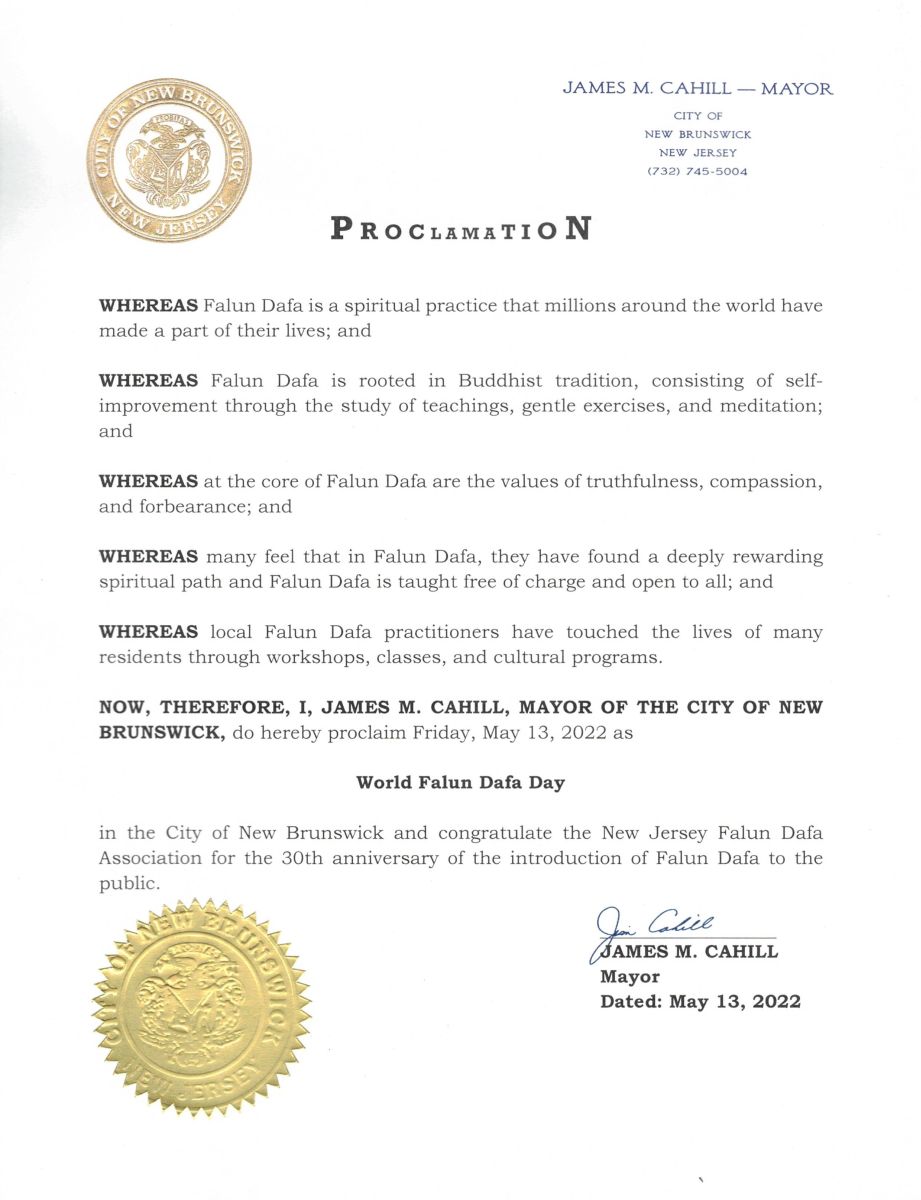 因此,我,詹姆斯M.卡希尔,新布朗斯维克市市长,特此宣布,二零二二年五月十三日星期五为