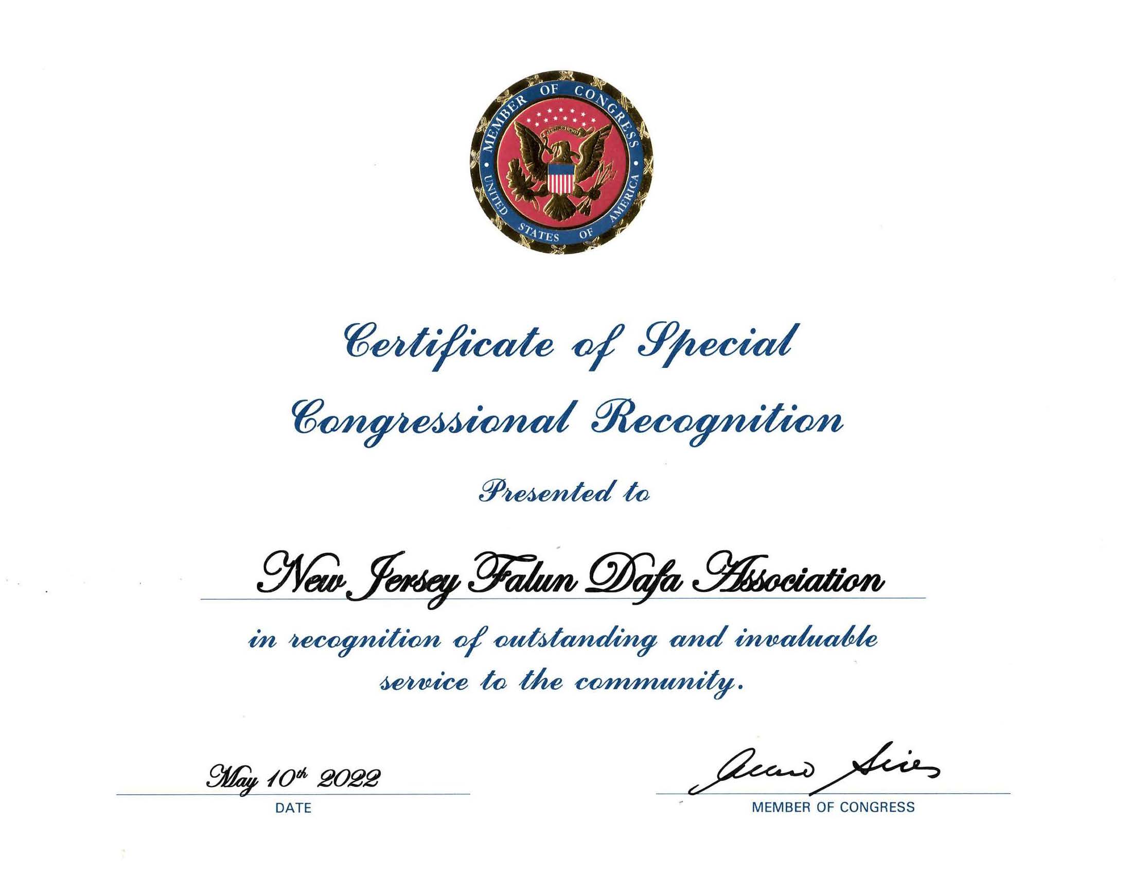 【明慧网二零二二年五月十七日】在庆祝第二十三届“世界法轮大法日”和法轮大法弘传世间三十周年之际,二零二二年五月,美国新泽西州政要纷纷发来褒奖与贺信,赞扬法轮大法的祥和与美好;同时,对中共迫害法轮功修炼者罪行关注和谴责。其中包括,新泽西州第一、第二、第八、第十、和第十一选区的五位联邦众议员。