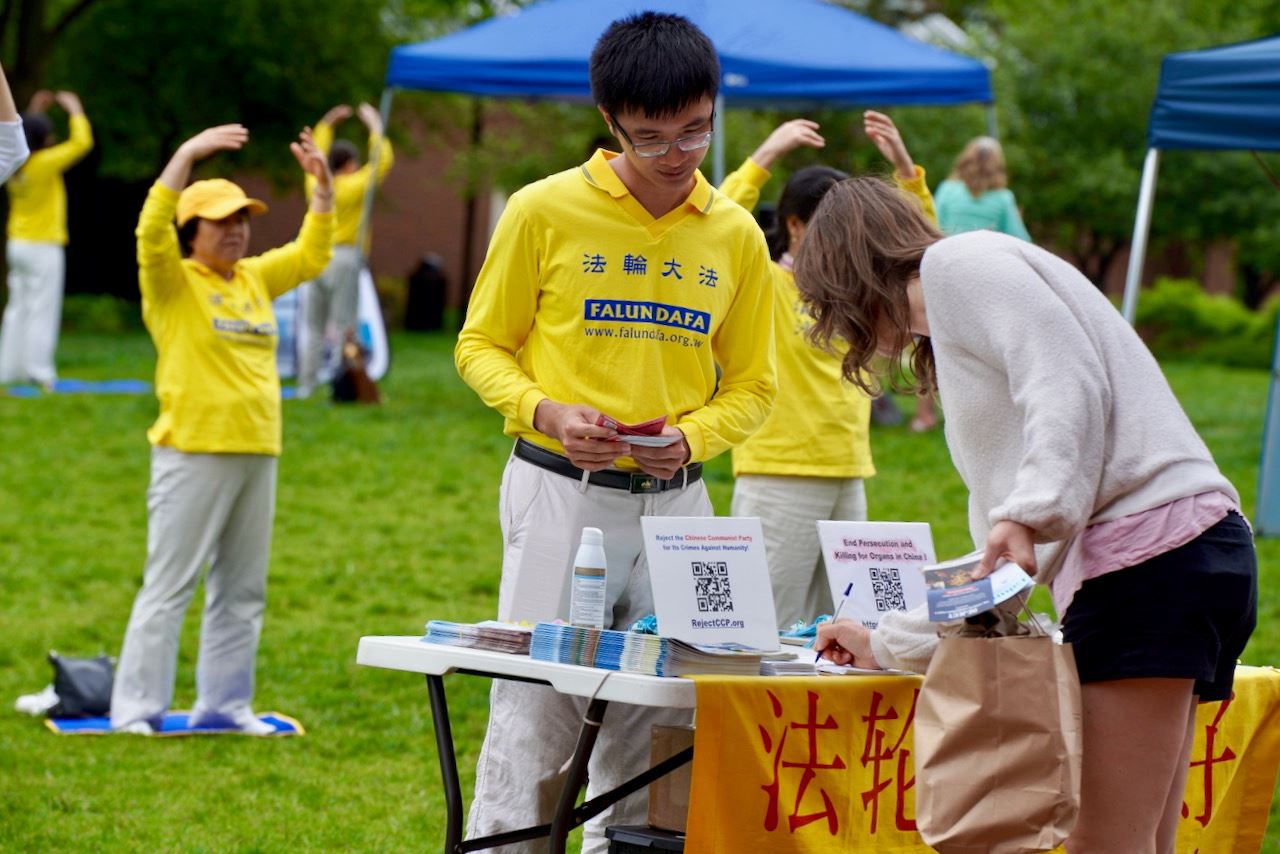 法轮功学员以演示法轮功功法、教功,展示真相板、分发法轮功真相资料和手折莲花,演唱大法歌曲,分享个人修炼体会,演示中国书法,解体中共征签等多种形式向遊客介绍法轮功的美好,并揭露中共迫害法轮功的罪恶。