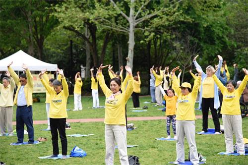 法轮大法洪传世界二零二二年来,使一百多个国家的上亿人身心受益。在集会上,许多法轮功学员分享了自己和家人修炼法轮功后身心的巨大改善。