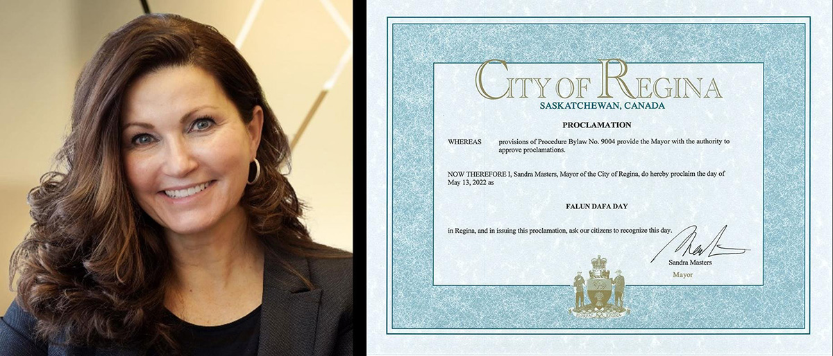 二零二二年五月十三日,里贾纳市长桑德拉‧马斯特斯(Sandra Masters)宣布褒奖法轮大法,并宣布二零二二年五月十三日为里贾纳市法轮大法日。
