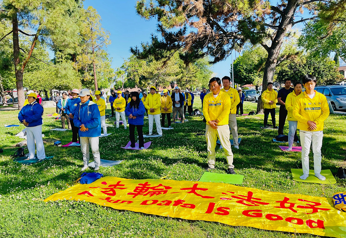 图2:同天,旧金山南湾的部分法轮功学员在圣荷西卡塔尔迪公园集体炼功。