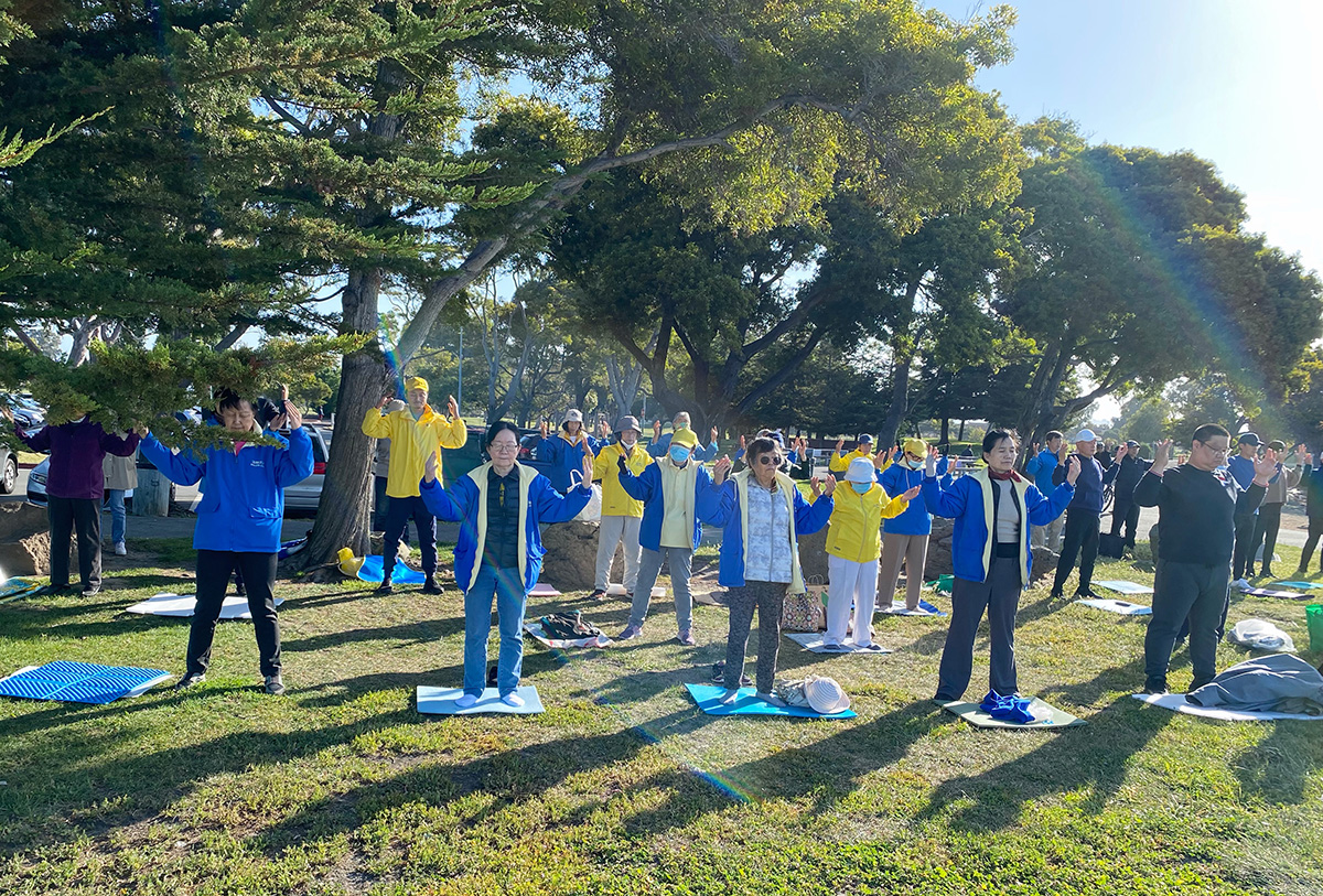 迎接五·一三 旧金山湾区学员集体炼功弘法