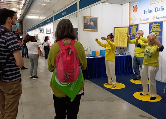 五月四日至八日,第28届健康博览会在巴塞罗那举行。当地的法轮功学员再次参展,演示功法,并向民众讲述法轮大法的原则。