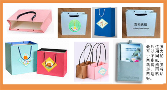 同修在将真相资料赠送给亲友或主流人士时,可以用纸质礼品袋、磨砂自封袋、PVC透明手提袋等包装资料,小袋子可以装卡片和传单,大的可以装真相期刊等资料。