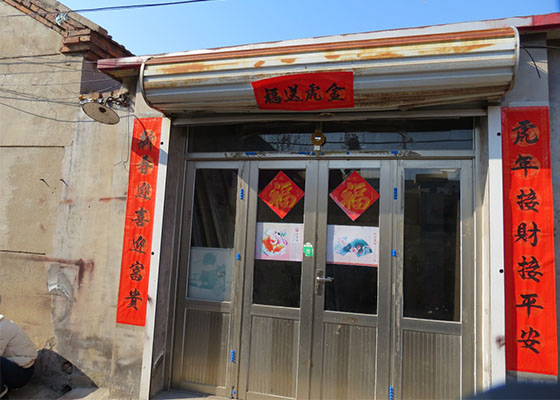 该图片拍摄于二零二二年二月八日中午。图片是河北省沧州市某县城一个在宽胡同开的字画装裱店的门面。