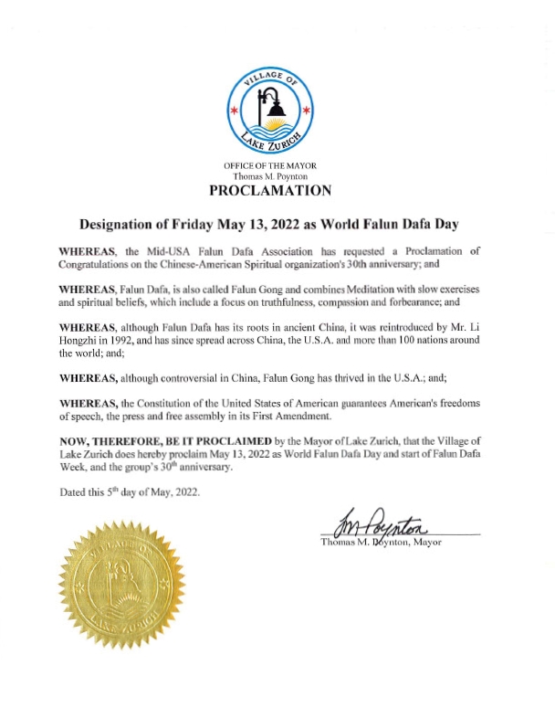 因此,现在,苏黎世湖市的市长,特此宣布二零二二年五月十三日为“法轮大法日”,以及随后的一周为法轮大法周,并庆祝法轮大法洪传30周年。