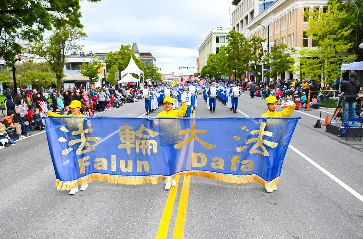 ![]() 图1:五月二十三日,加拿大卑诗省府维多利亚市举行了盛大的维多利亚日游行,70个团体参加游行,法轮功方阵是其中最大的队伍。 |