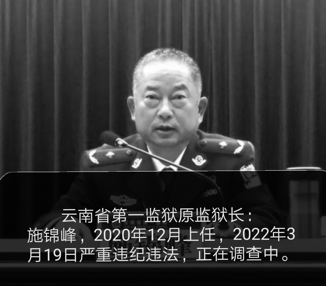 (2)施锦峰,2020年12月任云南省第一监狱监狱长,2022年3月19日,涉嫌严重违纪违法,被调查。