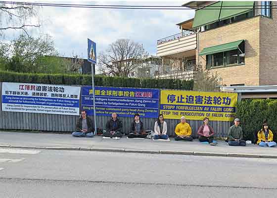 四月二十五日,挪威奥斯陆和周边城市的部分法轮功学员来到中使馆举行和平请愿,秉承二十三年前,中国大陆法轮功学员和平上访的精神。