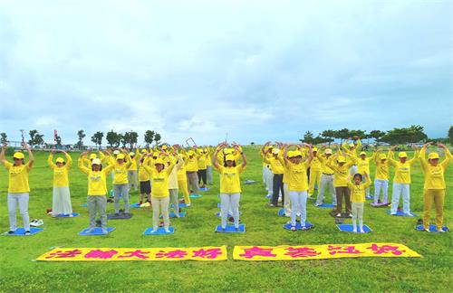 【明慧网二零二二年五月七日】欣喜迎接“五·一三”法轮大法弘传世界三十周年,暨第二十三届世界法轮大法日,台湾台东地区部份法轮功学员于二零二二年四月底来到台东国际地标前大草原,集体炼功,展现功法的祥和美好。