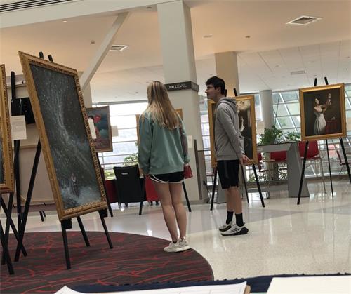 展览期间很多学生和教职人员,以及来参加毕业典礼的家长们,都被艺术作品所表现的内涵深深的感动。他们有的表示感受到了法轮功修炼者面对酷刑迫害,面对生死及修炼法轮功后心路历程的升华;有的表示敬佩法轮功修炼者对真善忍的坚定信仰所表现出的高尚品格与慈悲胸怀。还有的人们在留言中感谢美展带给他们的真相。