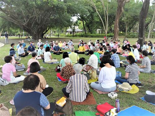 图1:屏东部分法轮功学员齐聚千禧公园,双手合十齐声恭祝师父生日快乐。