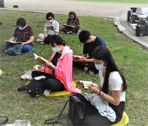 祝贺活动结束后,屏东法轮功学员们集体学法,并分享心得交流,在修炼路上比学比修。