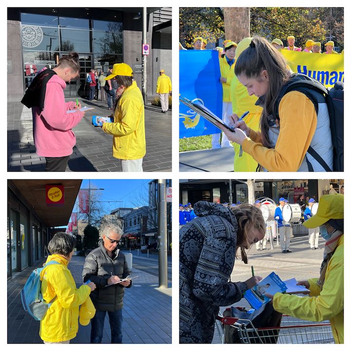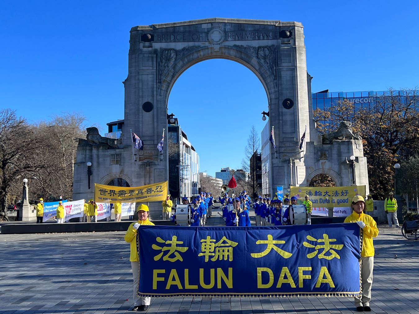 【明慧网二零二二年六月十三日】(明慧新西兰记者站报道)南半球的新西兰基督城现在正值冬季,二零二二年六月十一日星期六基督城,晴空万里,法轮功学员在市中心纪念桥边举行集会、游行、讲真相等活动,希望人们来了解法轮大法的美好,并且关注中共迫害人权的问题。新西兰民众称赞法轮功学员坚守信仰、和平理性。