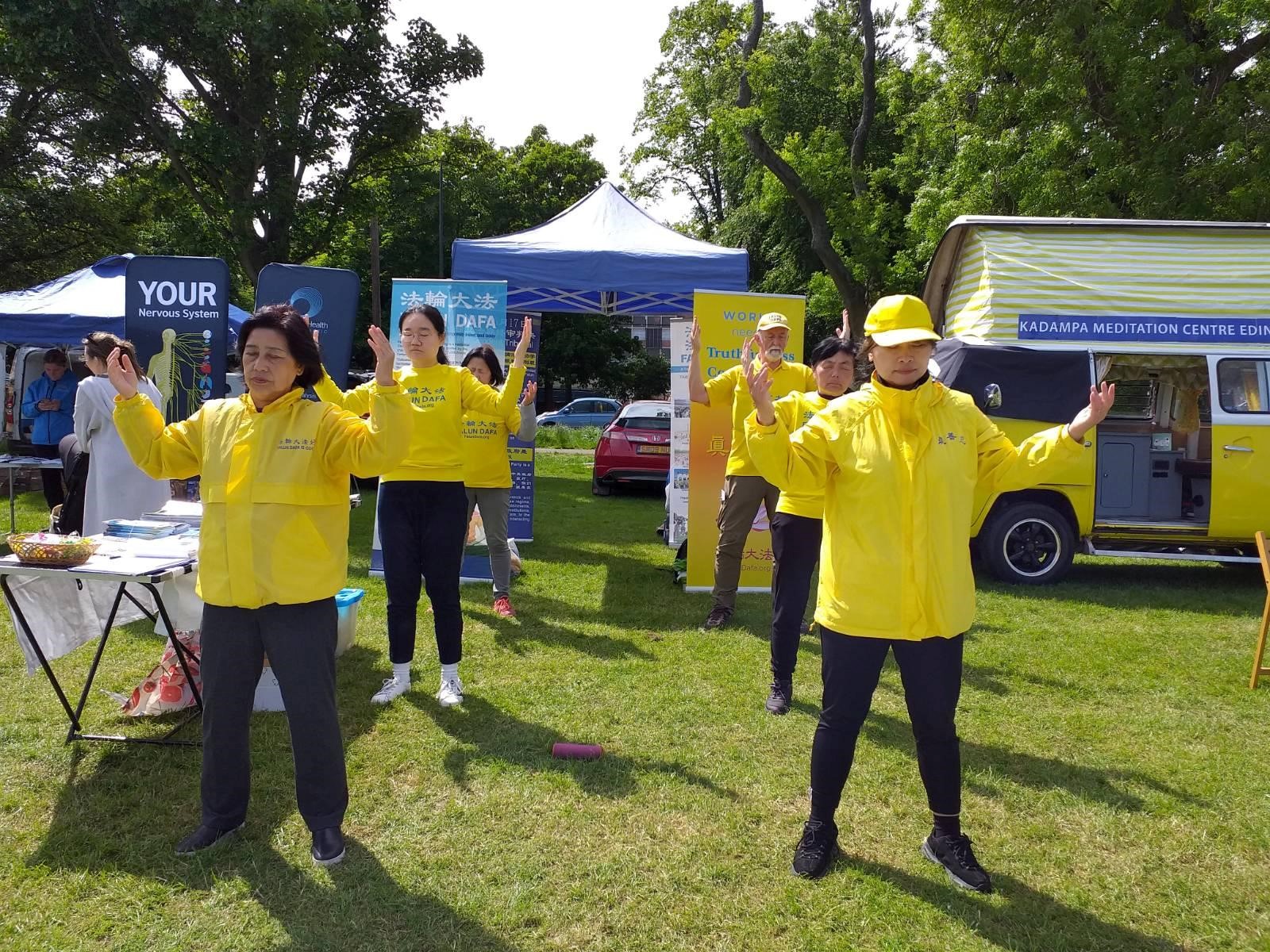 与历届草地艺术节相比,今年更多的各族裔民众表示想学炼法轮功。学员告诉他们在法轮大法网站上可以查找爱丁堡、以及世界各地的义务教功点,有些地区还开设网上教功班。
