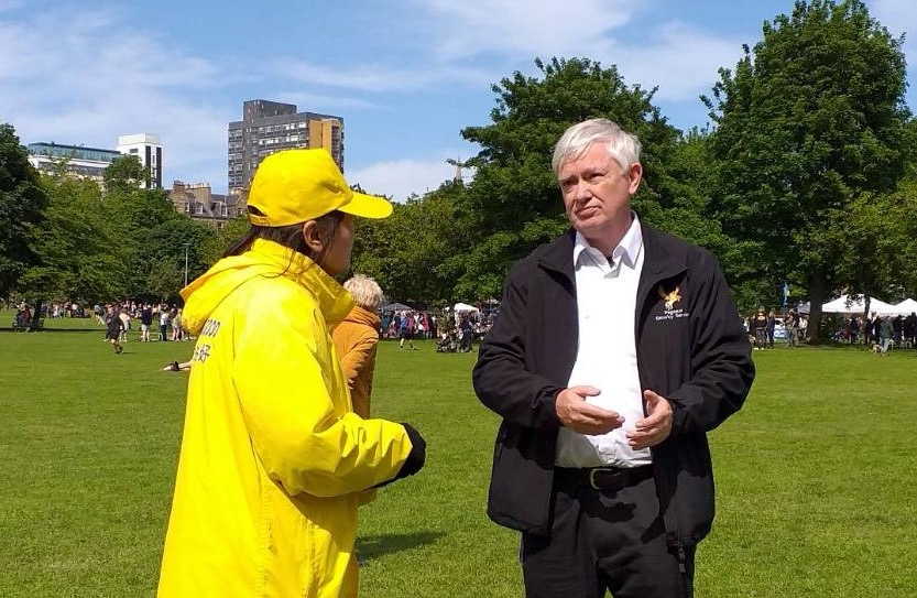 这位男士去年从香港移民到爱丁堡,他说,二零一九年之前,在香港每年可以看到多次法轮功的大型游行,很有气势。如今,再也看不到了;香港失去了自由。他还说,中共派人干扰破坏法轮功真相点,香港人很不喜欢。