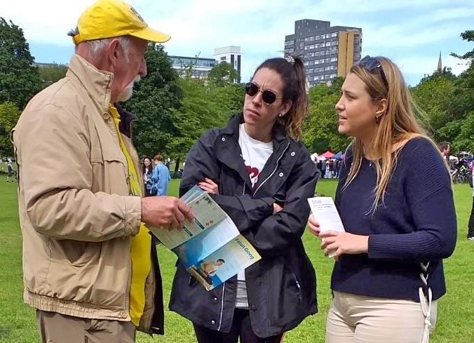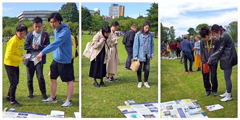 两天来,学员罗斯玛丽一直忙着给有兴趣学炼功法的人介绍爱丁堡炼功点的位置和联系方式。还有很多民众在了解真相后签名支持法轮功学员制止迫害。
