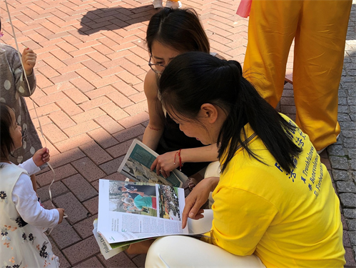 ![]() 图 6~7:人们向法轮功学员了解真相 |