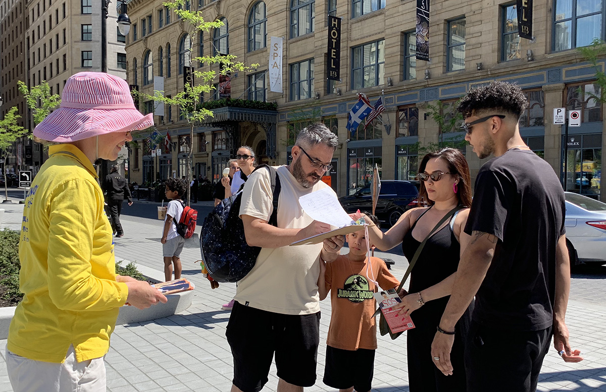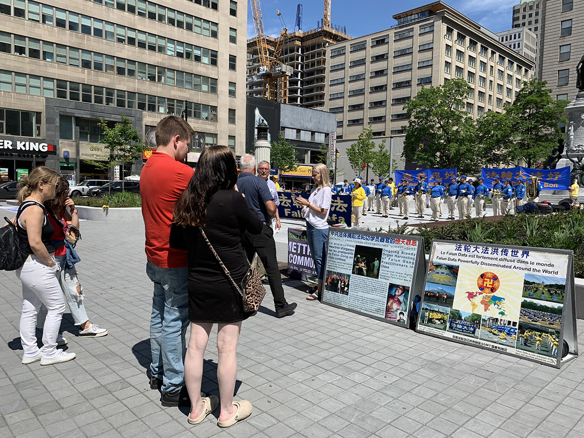 【明慧网二零二二年六月十四日】二零二二年六月十一日,加拿大蒙特利尔部分法轮功学员在市中心菲利浦广场,以集体炼功、天国乐团演奏、征签等方式,告诉人们法轮大法的美好,以及中共迫害法轮功的真相,得到各界民众的支持。