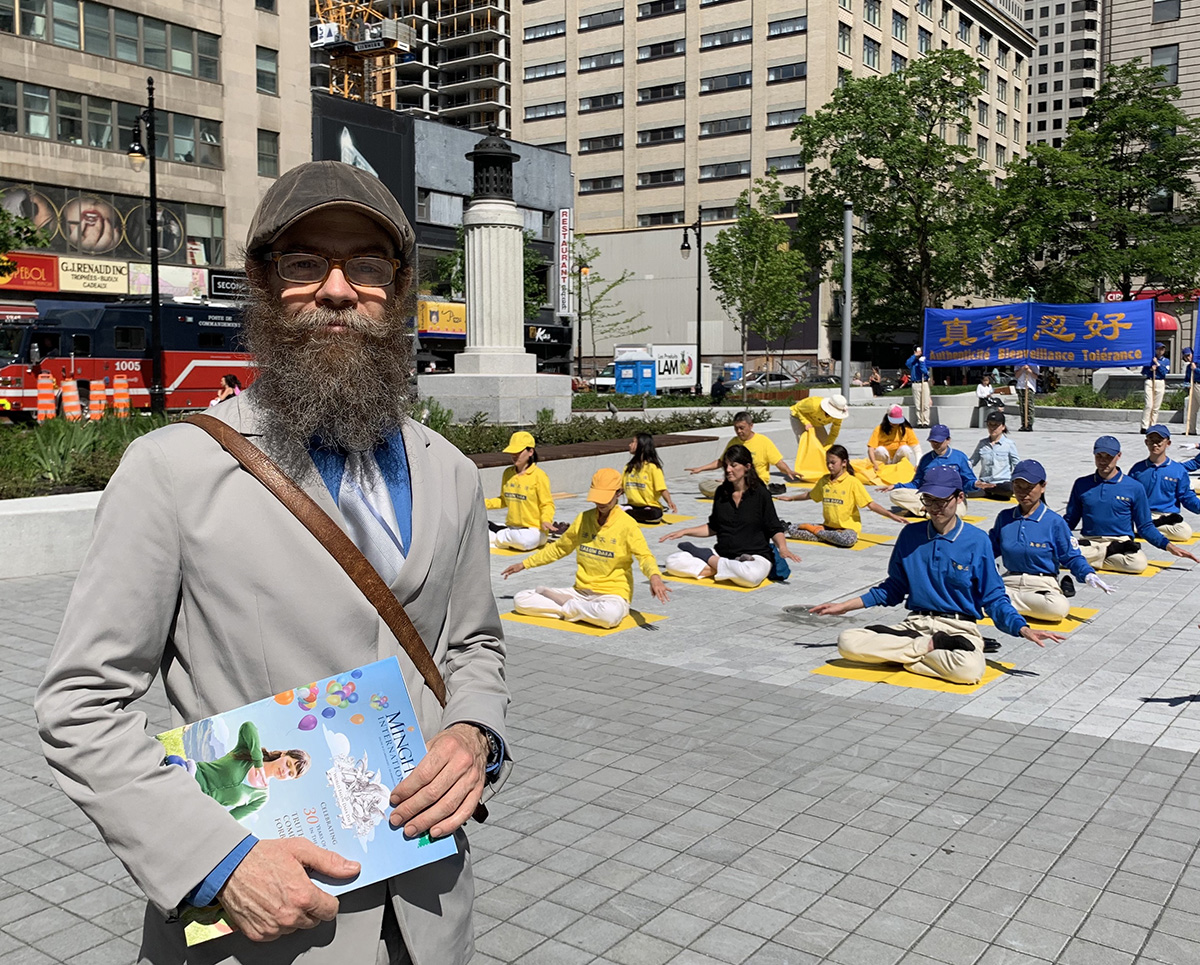 蒙特利尔市民雅克布(Jacob)向法轮功学员表达支持:“我知道法轮功对人有益处。我认为,人们应当有按照自己意愿修炼的自由,不应该受到迫害。中国(中共)政府认为只允许人们有一种想法,但事实并非如此。我向法轮功和其他受迫害的中国人表达我的良好祝愿,希望你们的努力成功,改变这一切。”