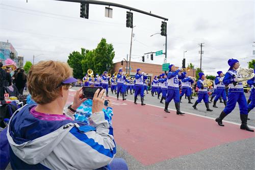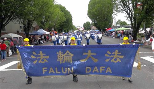波特兰一年一度的“玫瑰节”因受新冠疫情大流行的影响,停办了两年,今年再度举办,据称有数十万观众。游行路线由纪念体育馆(Memorial Coliseum)开始,经过市中心,全长二英里。天国乐团压轴登场,进入体育馆的一刻,令人振奋的鼓乐,引来满场观众的掌声。