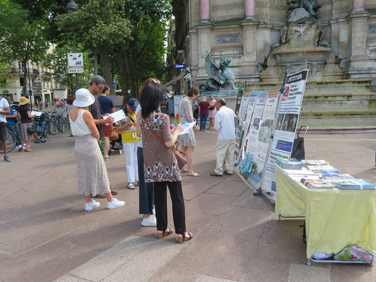 【明慧网二零二二年六月二十一日】(明慧记者周文英巴黎采访报道)二零二二年六月十一、十二日和十八、十九日,连续两个周末下午,法轮功学员在巴黎市中心的夏特蕾(Châtelet)街区和圣米歇尔广场(Place Saint-Michel)进行了介绍法轮功、讲真相和征集签名反迫害的活动。