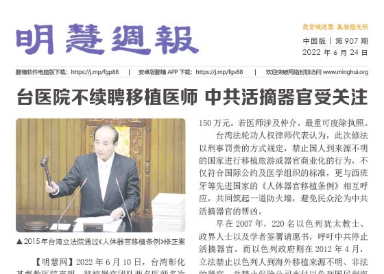 台医院不续聘器官移植医师 中共活摘器官再受关注