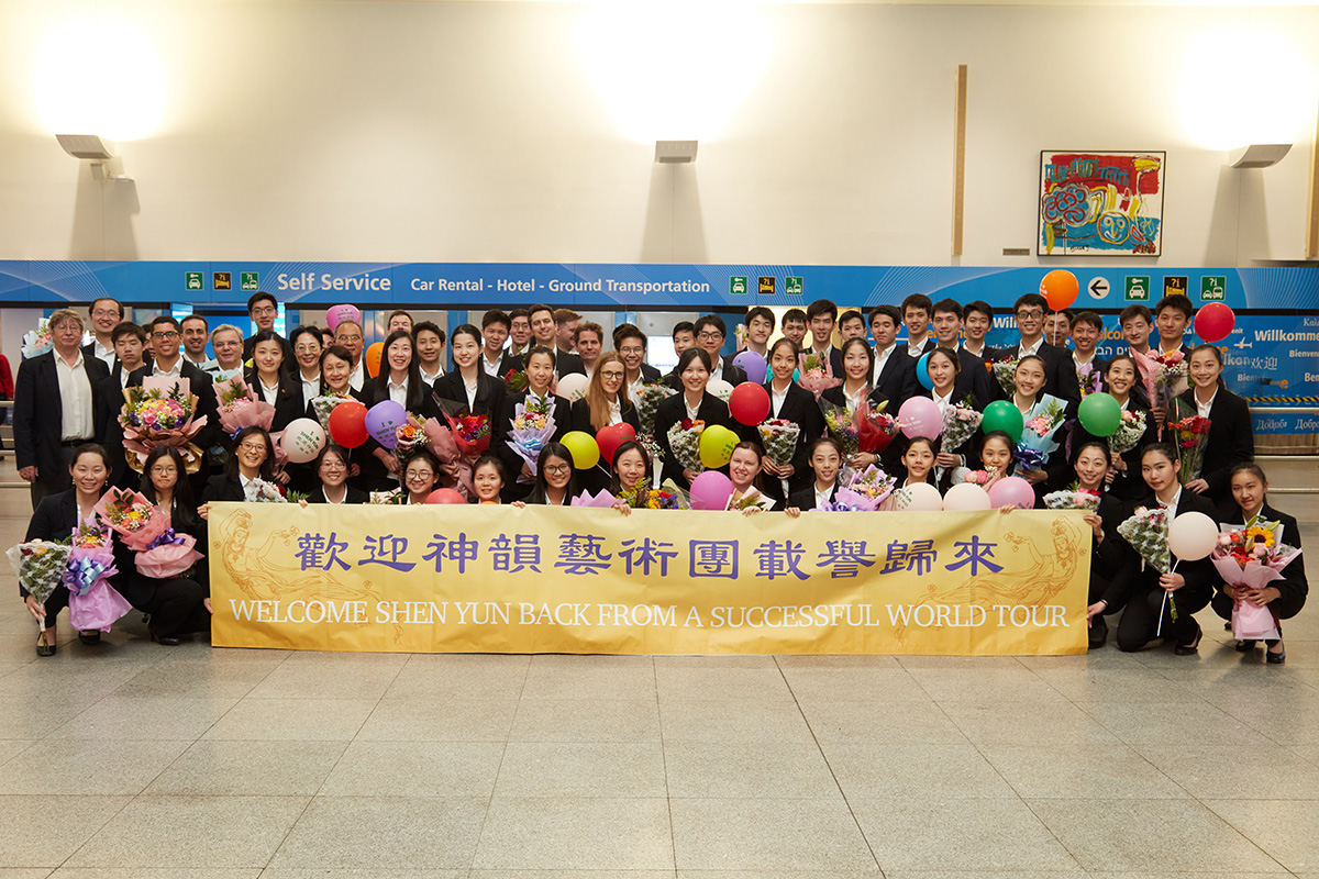 图1:神韵世界艺术团结束了在欧洲的巡回演出,于二零二二年六月十四日载誉返回美国纽约。(大纪元)