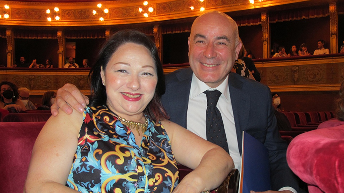 图11:二零二二年六月十七日晚,艺术家塞蒂娜·卡拉里(Cettina Callari)与丈夫Giuseppe Di Martino一同观看了神韵纽约艺术团在巴勒摩马西莫剧院的第三场演出。(大纪元)