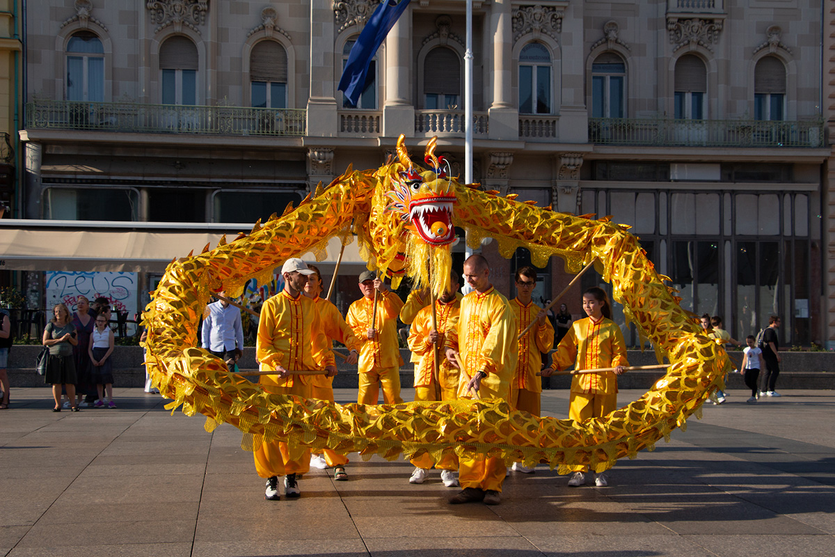 在此庆典期间,天国乐团还在克罗地亚首都萨格勒布(Zagre)举行了一系列游行活动,并借此机会向民众讲述法轮功的真相。