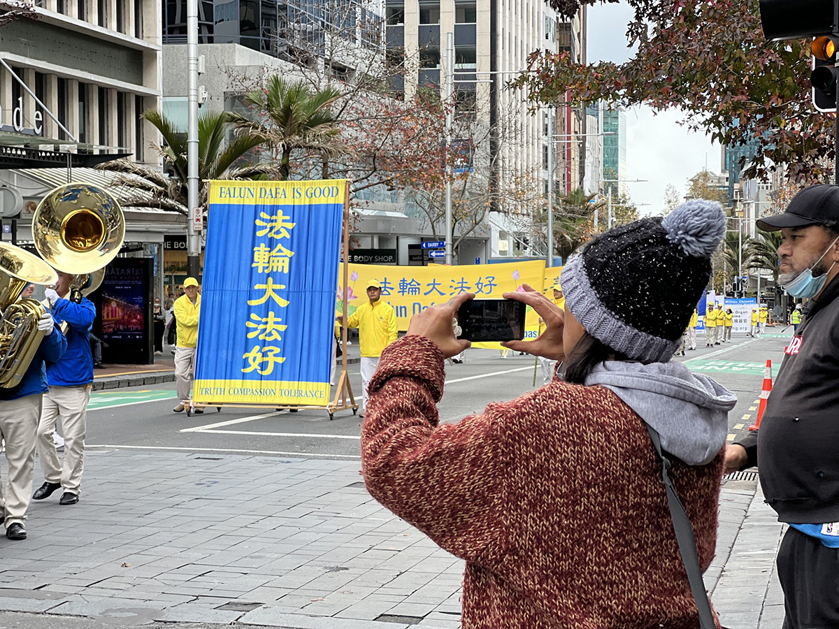 新西兰女警官温迪·皮克林(Wendy Pickering)赞赏天国乐团的演奏和法轮功学员的游行,并称今天是个美好的日子。她说:“他们(法轮功学员)非常自律(discipline)。天国乐团的演奏美妙动听,民众都享受其中。”