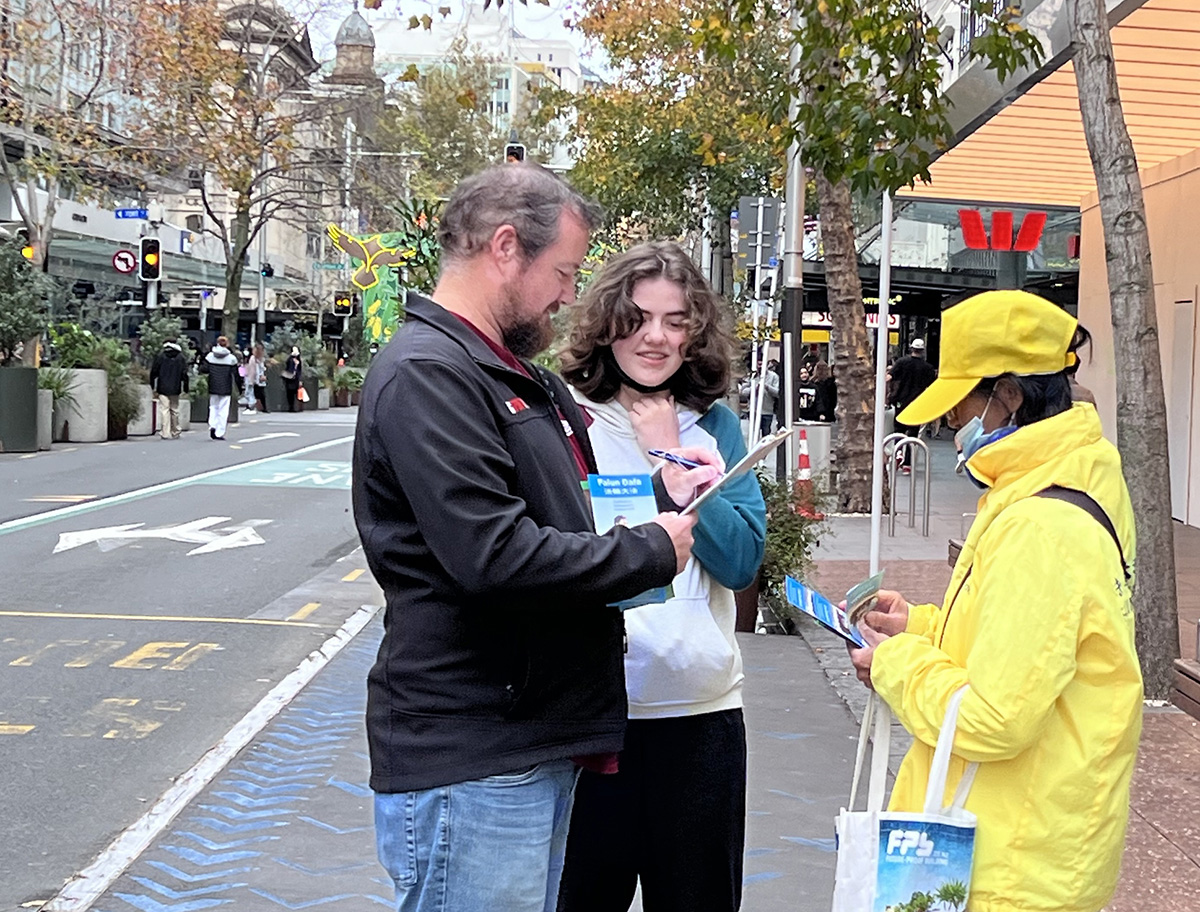 新西兰大赦国际、前市议员、人权律师、公民自由委员会、藏人协会、民主中国阵线、地下教会牧师、新西兰基督教等社会各界人士到场支持,他们一致呼吁人们反对中共暴政;关注那些正在遭受中共酷刑折磨的法轮功学员以及其他团体;敦促新西兰政府制裁侵犯人权的中共官员。